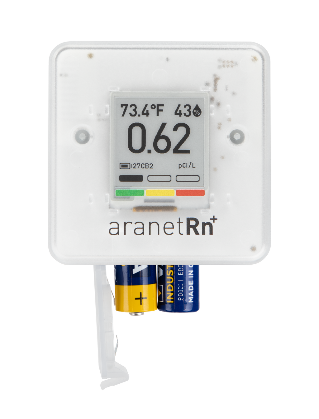 Radon Range: 0–4000 (up to 108.10 pCi/L).Power Source: 2 x AA batteries (included).Accuracy: for 24-hour, 7-day, and 30-day averages.